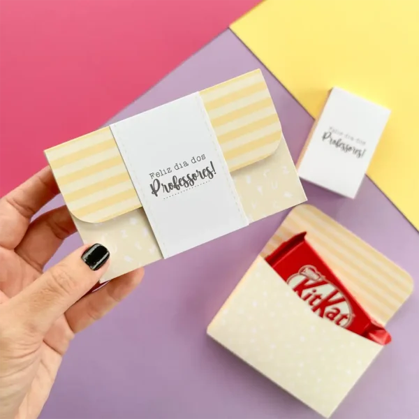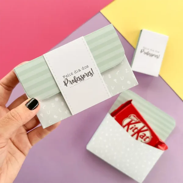 caixa carta pra chocolate (kit kat, bis xtra) com luva dia dos professores