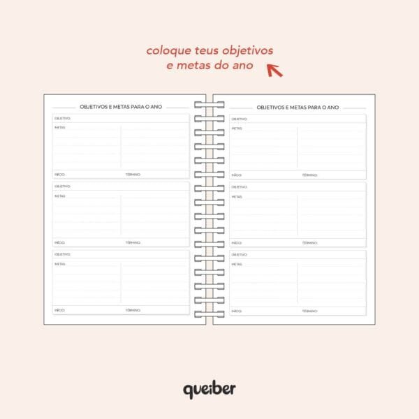 - objetivos e metas para o ano: anote teus objetivos e as pequenas metas de cada objetivo